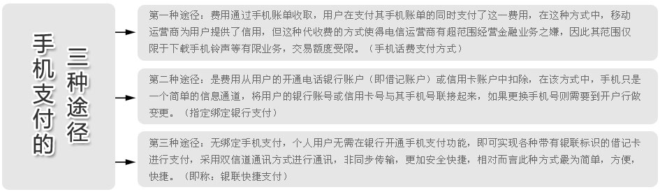 | 中國作為世界上最大的移動市場,手機用戶已經(jīng)突破了9億,有著巨大的發(fā)展?jié)摿?。不過有專家指出,全產(chǎn)業(yè)還處于初級階段,存在著付費步驟繁瑣以及安全隱患等瓶頸。如何將手機支付實質(zhì)應(yīng)用于日常的生活中已成為未來發(fā)展的重點。 | ||||