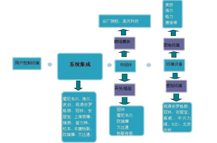 解讀:從圖中可以看出,智能家居系統(tǒng)包含的面很廣,因此和其產(chǎn)業(yè)相關(guān)的各路企業(yè)紛紛加大力度擴(kuò)展智能家居業(yè)務(wù)意欲從中分得一部分市場(chǎng)。目前除了上海索博、波創(chuàng)、瑞訊科技、普力特、超享智能等傳統(tǒng)智能家居廠家之外,市場(chǎng)上還有多種類(lèi)型的競(jìng)爭(zhēng)主體: